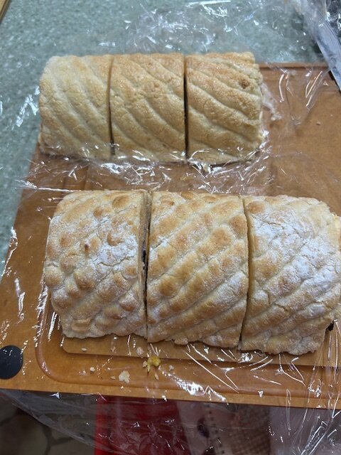 今日は初級のロールパンとシナモンロール、ジュリマダムプリン、ビワのシュトーレン